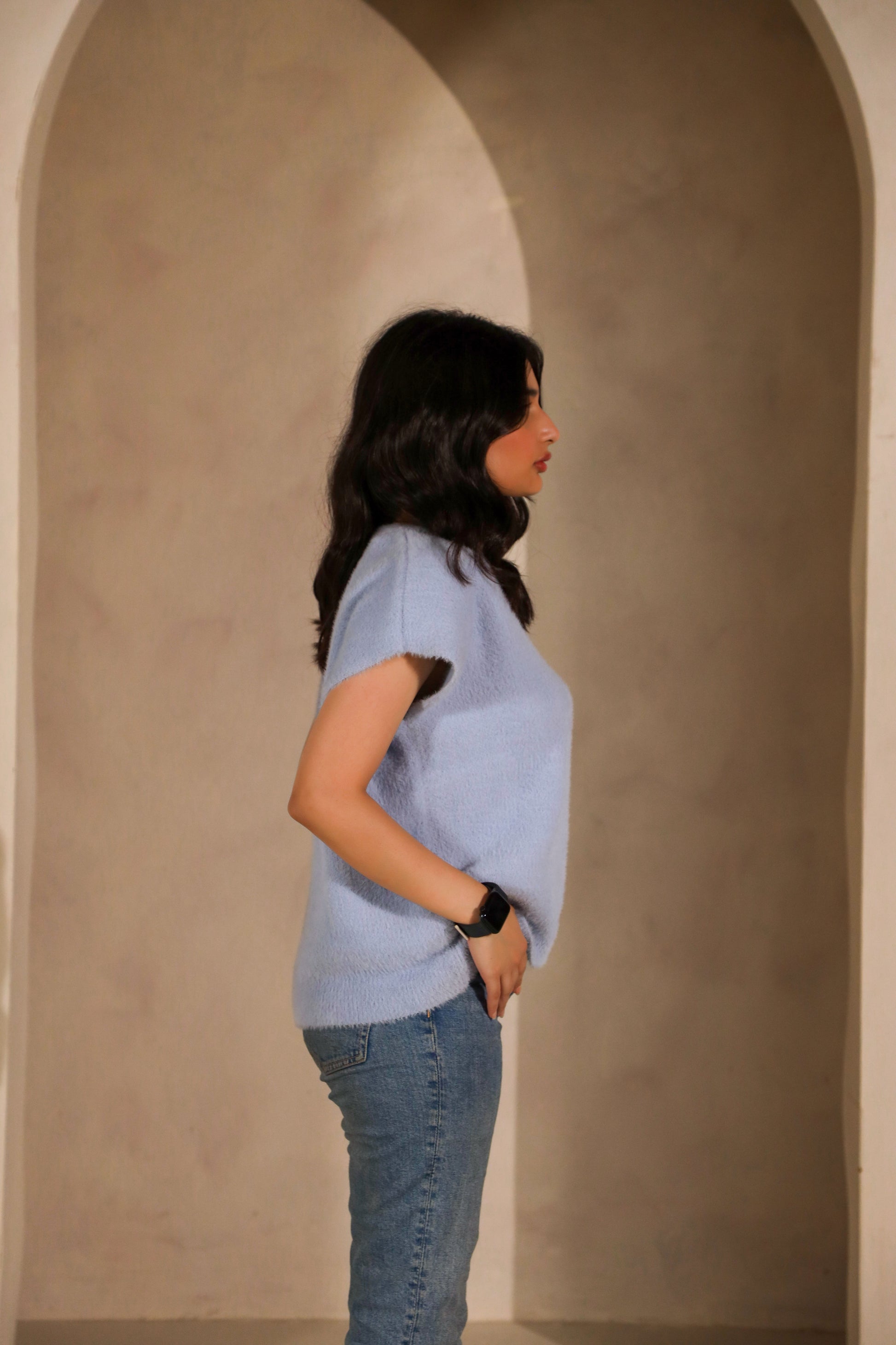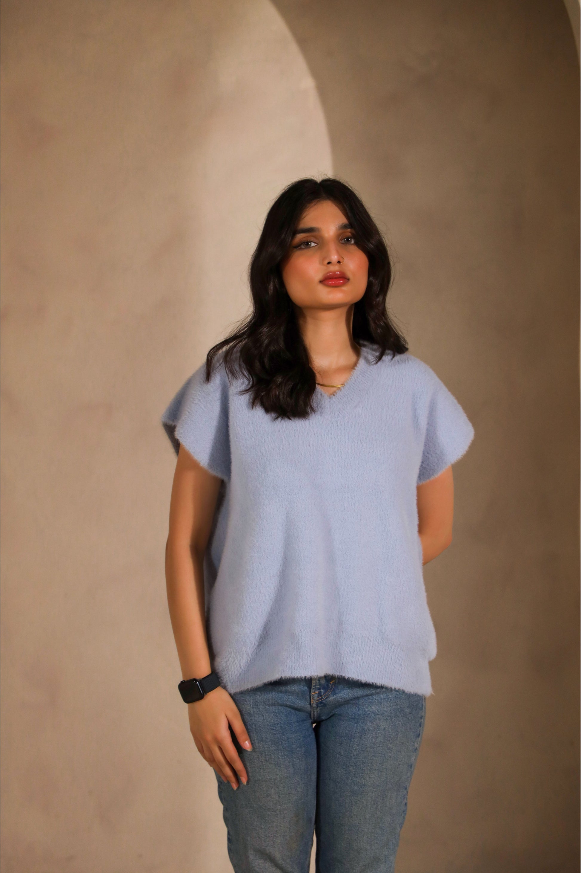 The Aquafade sweater is the perfect blend of comfort and style. Made from an ultra-soft, plush fabric, it feels like a gentle hug against your skin, making it a piece you'll fall in love with the moment you wear it. Its soothing pastel blue hue evokes a sense of calm and pairs beautifully with a variety of outfits. The relaxed, oversized silhouette with a V-neckline and wide, short sleeves adds a contemporary touch, offering both style and ease of movement. Whether you're lounging at home or heading out for a casual day, the Aquafade sweater is your go-to for effortless comfort and timeless charm. It's so soft, you won’t want to take it off!