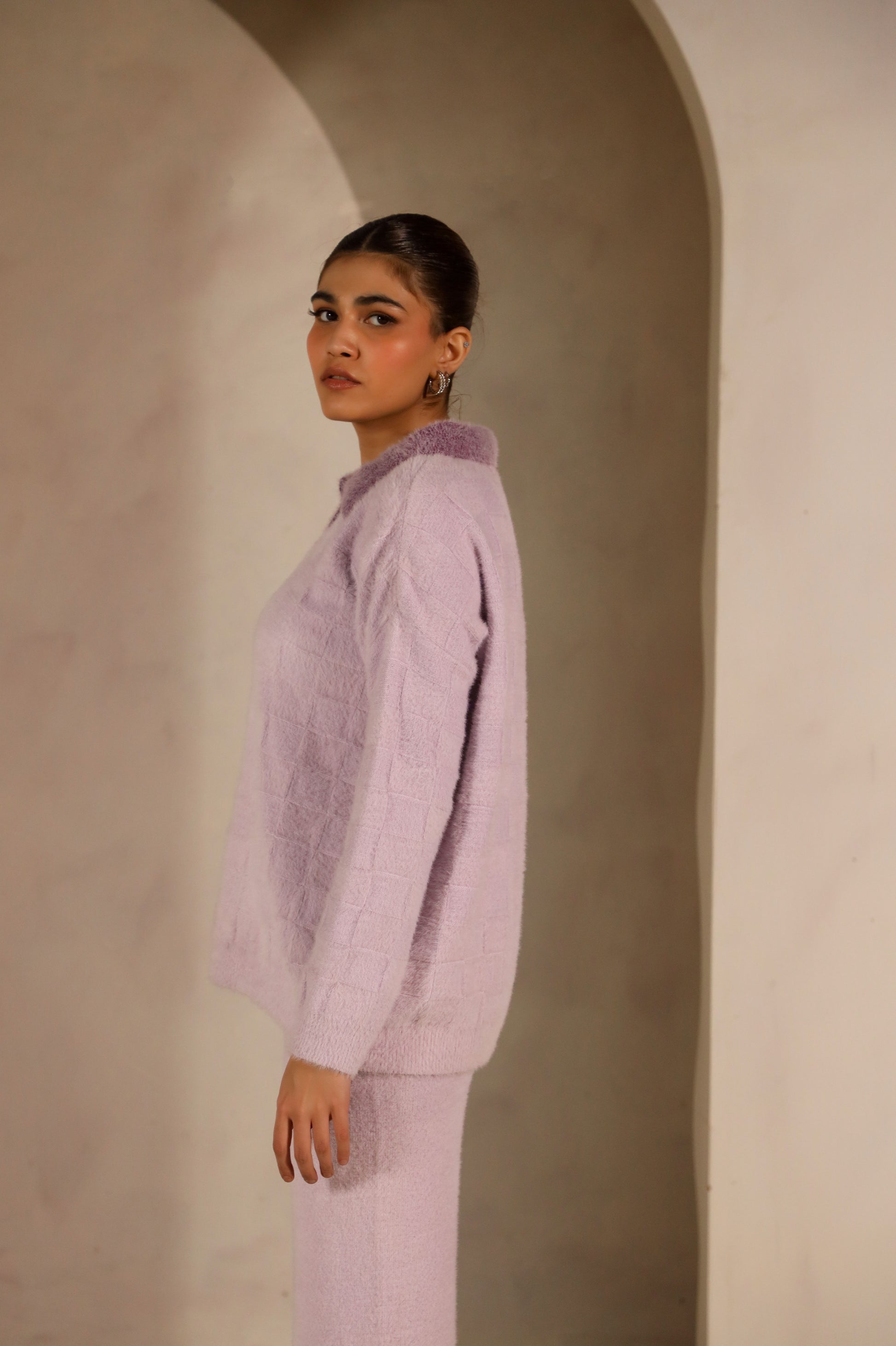 The Berry Bliss Co-ord set is a luxurious and cozy ensemble designed for both comfort and elegance. This two-piece set is crafted in a soothing lavender tone, making it a standout option for laid-back yet polished looks. The top features a relaxed, oversized silhouette adorned with a subtle checkered texture that adds depth and dimension to the design. Its standout detail is the plush, fur-textured collar in a richer berry-purple hue, giving it a playful yet sophisticated touch that feels soft and indulgent against the skin paired with matching wide-leg trouser that is equally comfortable, with a flowing, relaxed fit that drapes beautifully while ensuring unrestricted movement. Both pieces are made from an ultra-soft, fluffy knit fabric that feels like a gentle hug, offering warmth and coziness perfect for cooler seasons.With its tactile charm and elegant colour palette, Berry Bliss embodies a harmonious balance between style and comfort. It’s an ideal choice for lounging in luxury, casual outings, or even elevating your everyday wardrobe with a chic and feminine flair!