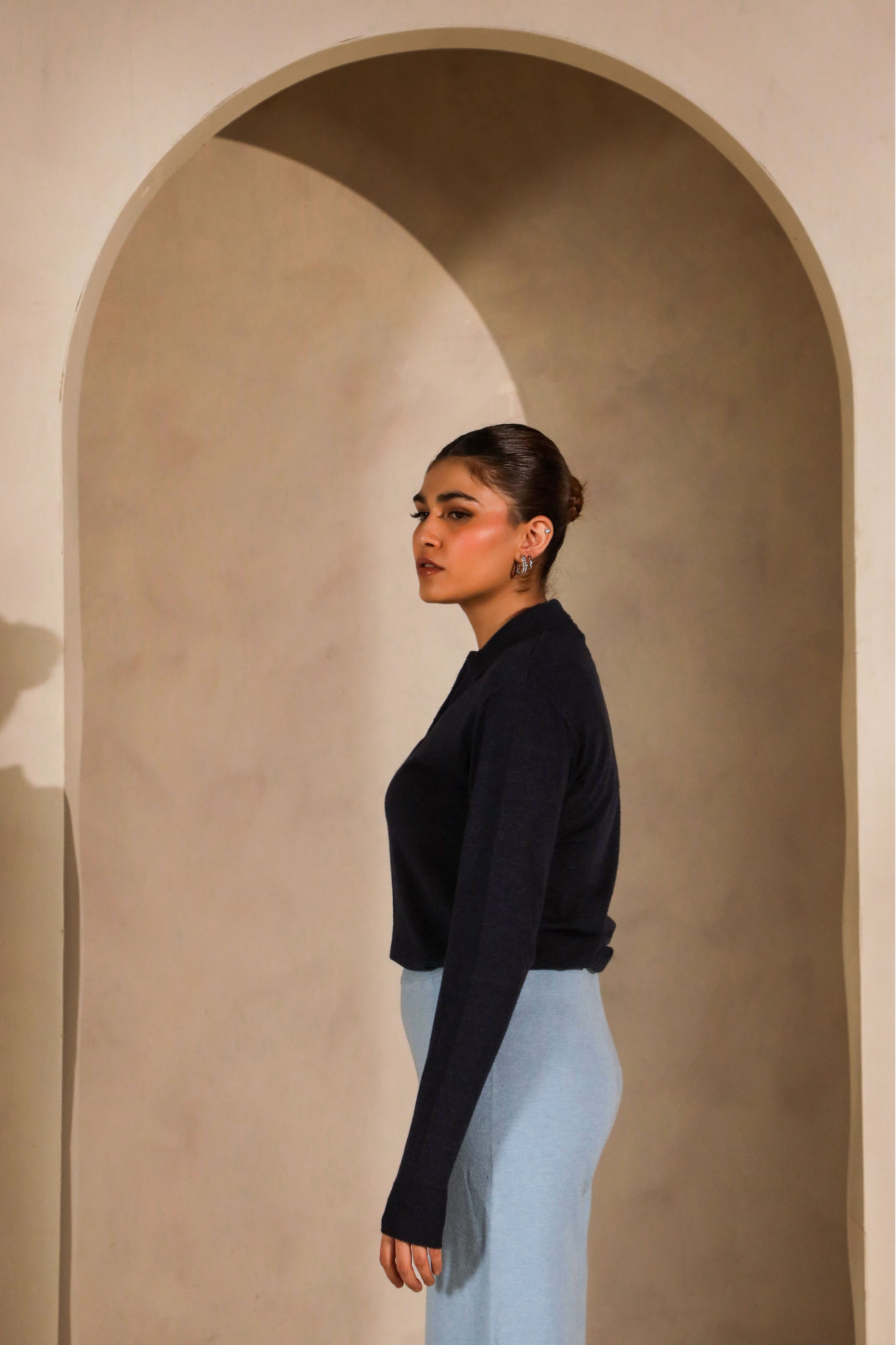 Experience ultimate comfort and timeless style with this Midnight Tide Polo. Crafted from premium, ultra-soft light weight yet warm fabric, this polo is designed to provide a cozy feel while maintaining a polished look. Its stretchy material ensures a perfect fit that adapts to your body, offering ease of movement and all-day comfort. The long sleeves and warm texture make it ideal for cooler weather, while the classic polo collar with a subtle zipper detail adds a modern touch to its versatile design. Whether you're dressing up for a casual outing or layering it under a jacket, this polo effortlessly combines functionality with elegance. Stay warm, comfortable, and effortlessly stylish with this must-have wardrobe staple.