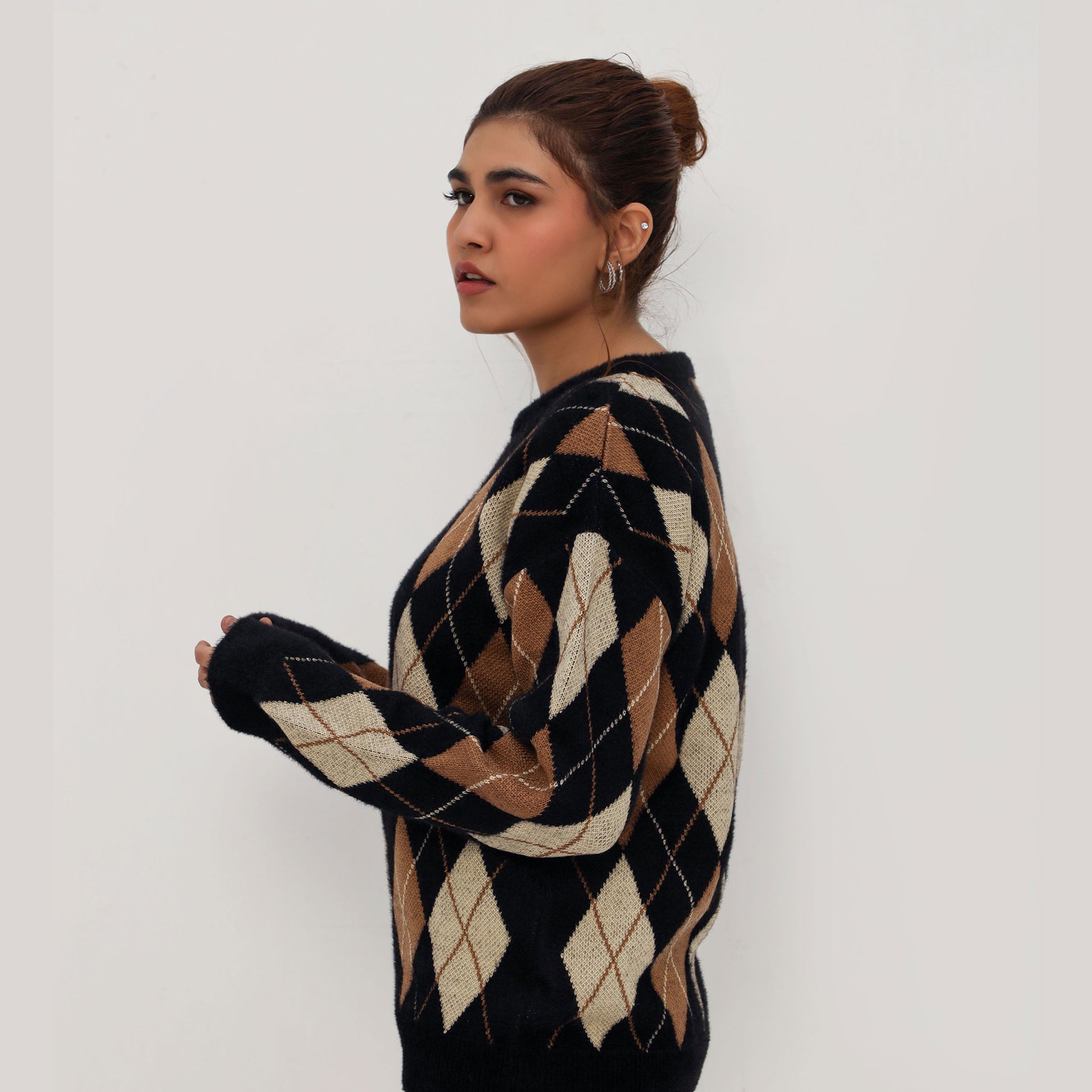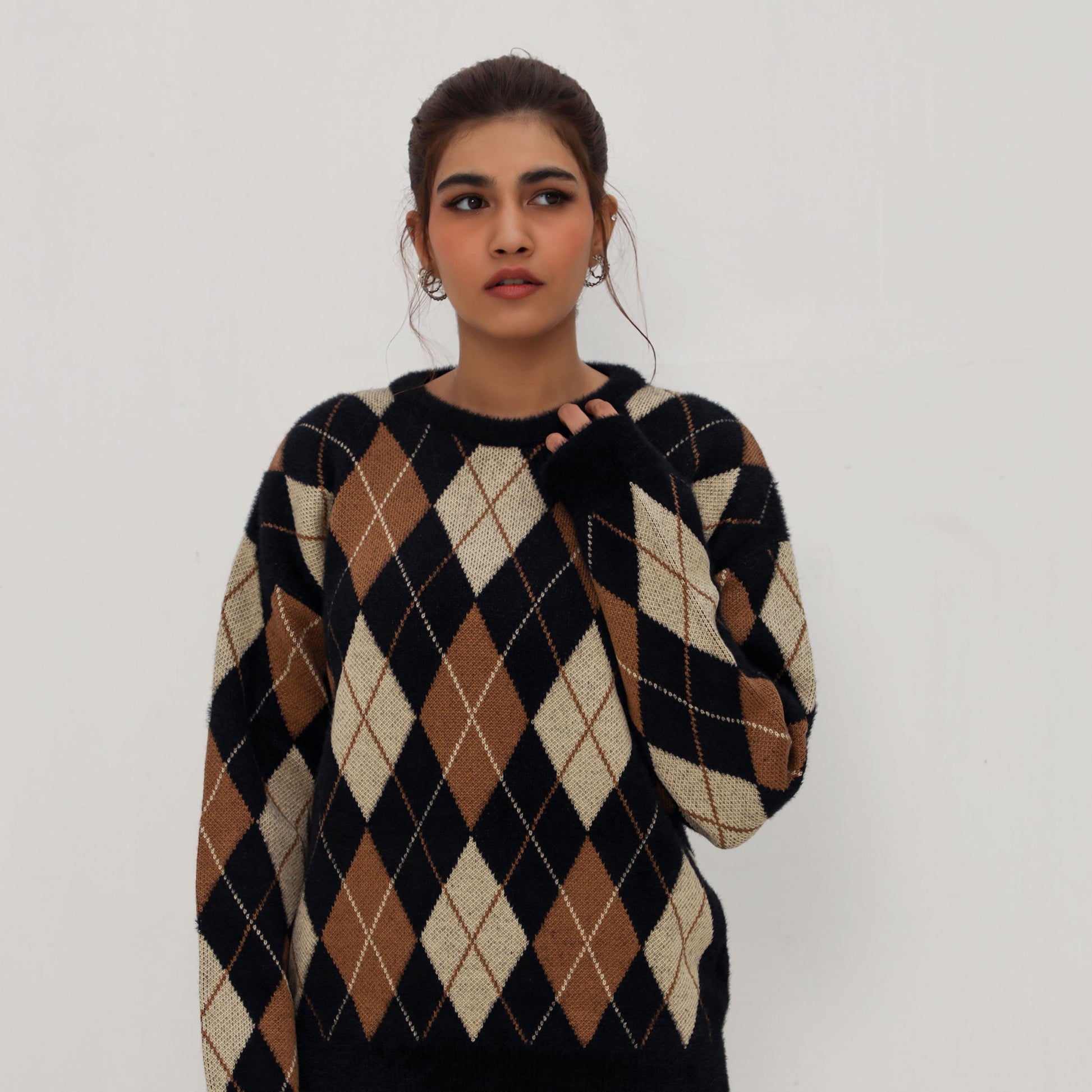 The Traditional Knit sweater is a timeless piece that combines classic style with modern comfort. Featuring a traditional argyle pattern, this sweater is both stylish and versatile. It is designed with fur accents on the bottom, cuffs, and neck rib, adding a luxurious touch and extra warmth. The soft and cozy fabric makes it exceptionally comfortable, ensuring you stay snug during colder days. Perfect for pairing with your favorite jeans or trousers, the "Traditional Knit" sweater is a must-have addition to your winter wardrobe.